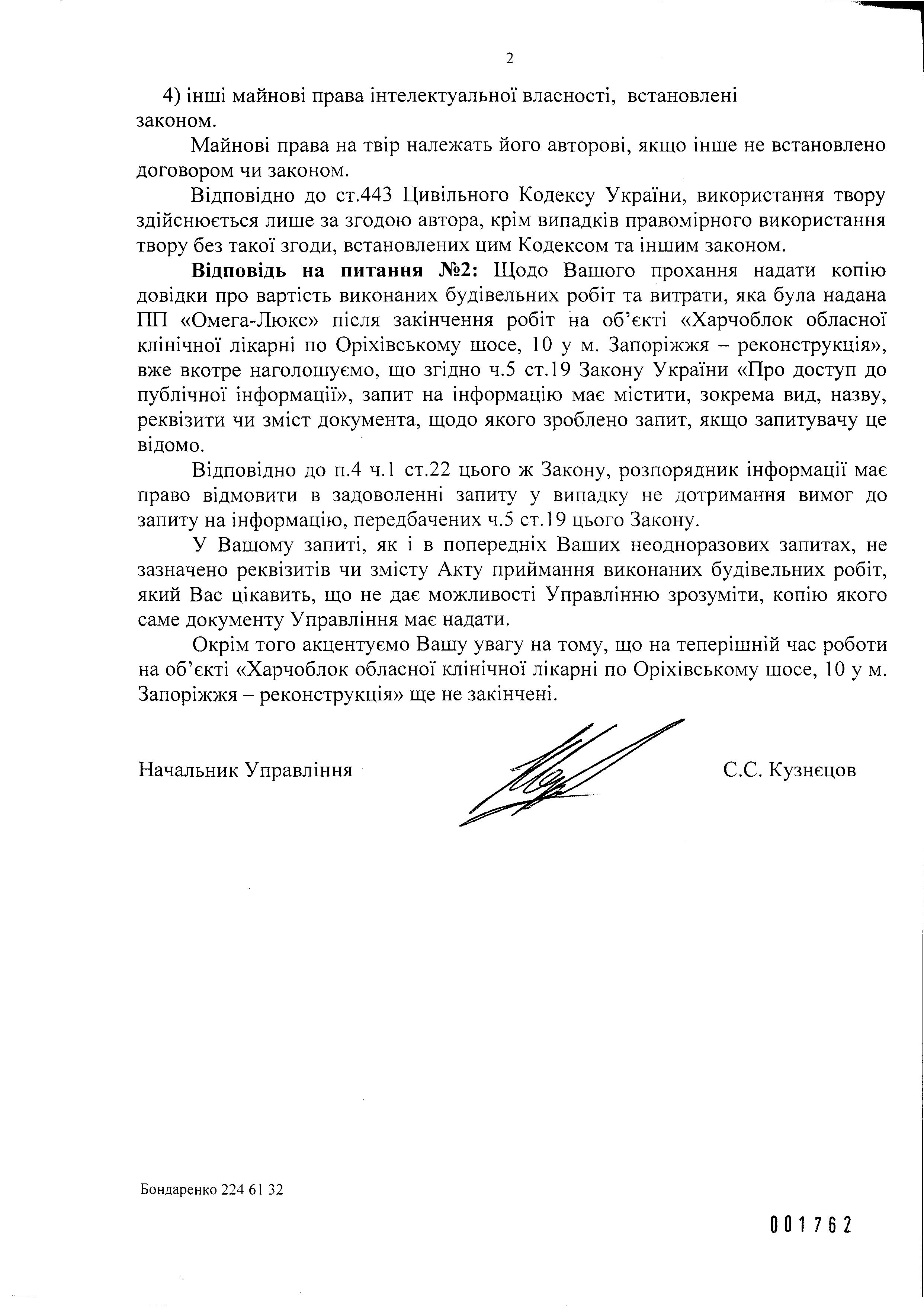 2. Зобов’язати Управління капітального будівництва Запорізької обласної державної адміністрації надати повну інформацію на зазначений запит, а саме: