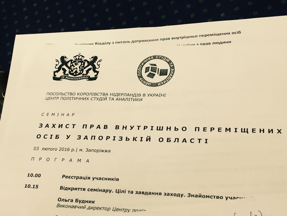 03 лютого 2016 р. у м. Запоріжжя відбувся семінар «Захист прав внутрішньо переміщених осіб у Запорізькій області»