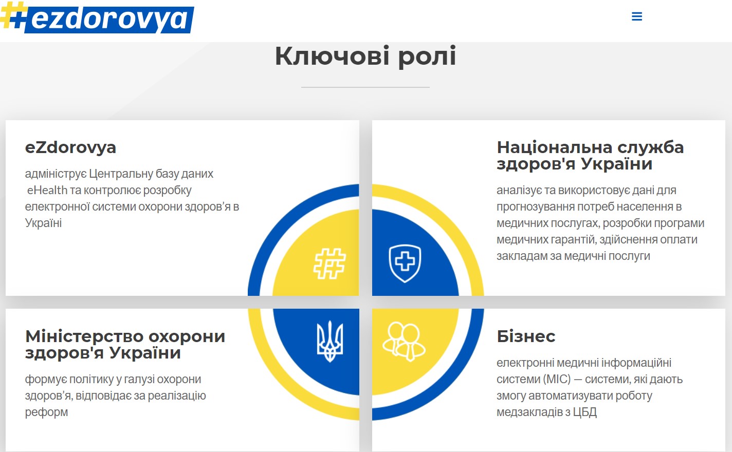 eZdorovya є основним розробником технічного ядра eHealth в Україні. eHealth — електронна система охорони здоров’я, що забезпечує обмін медичною інформацією та реалізацію програми медичних гарантій населення;