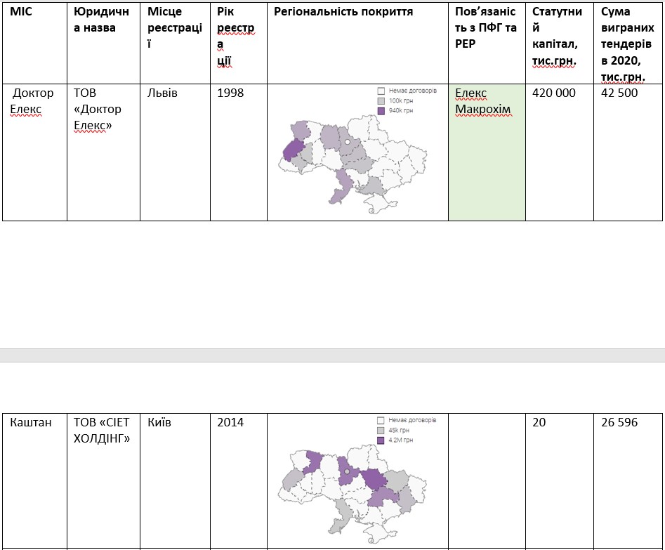 Тільки по цим піддослідним 13 МІС сума виграних в 2020 році тендерів складає 800 млн.грн., сплачених з бюджетів всіх рівнів (переважно з місцевих).