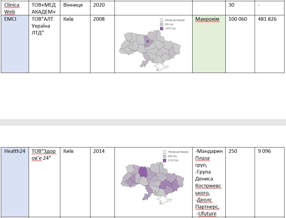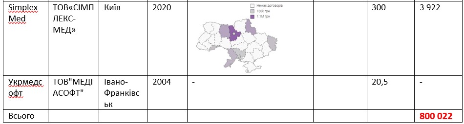 З зазначених на сайті 27 МІС вдалося встановити і дослідити лише 13. І тільки по цим 13 МІС сума виграних в 2020 році тендерів складає 800 млн.грн., сплачених з бюджетів всіх рівнів (переважно з місцевих).